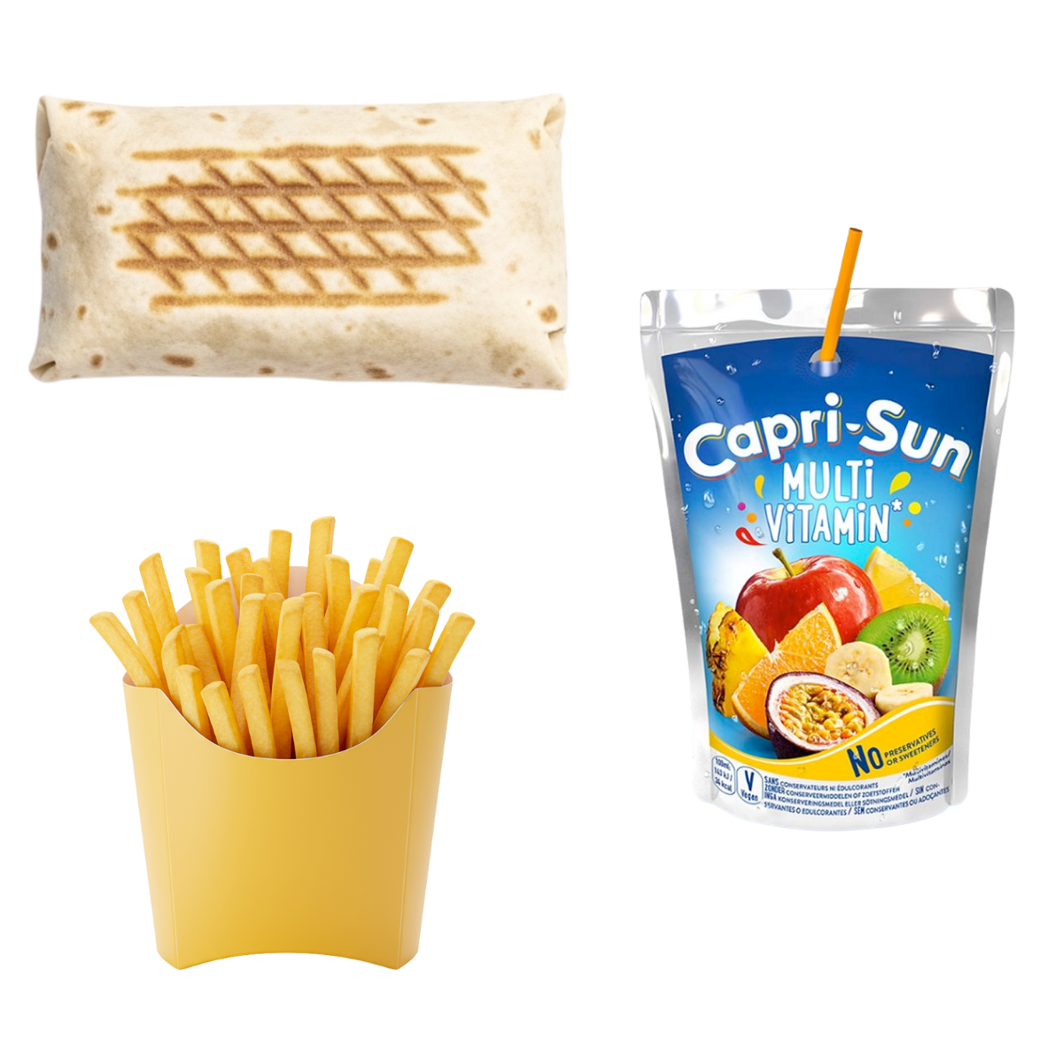 Mini tacos, capri-sun, portion frites.