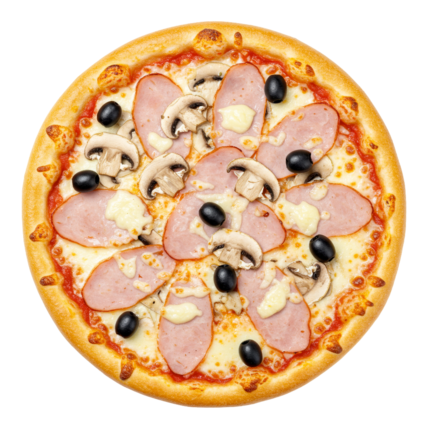 Mozzarella, emmental, champignons, jambon dinde.